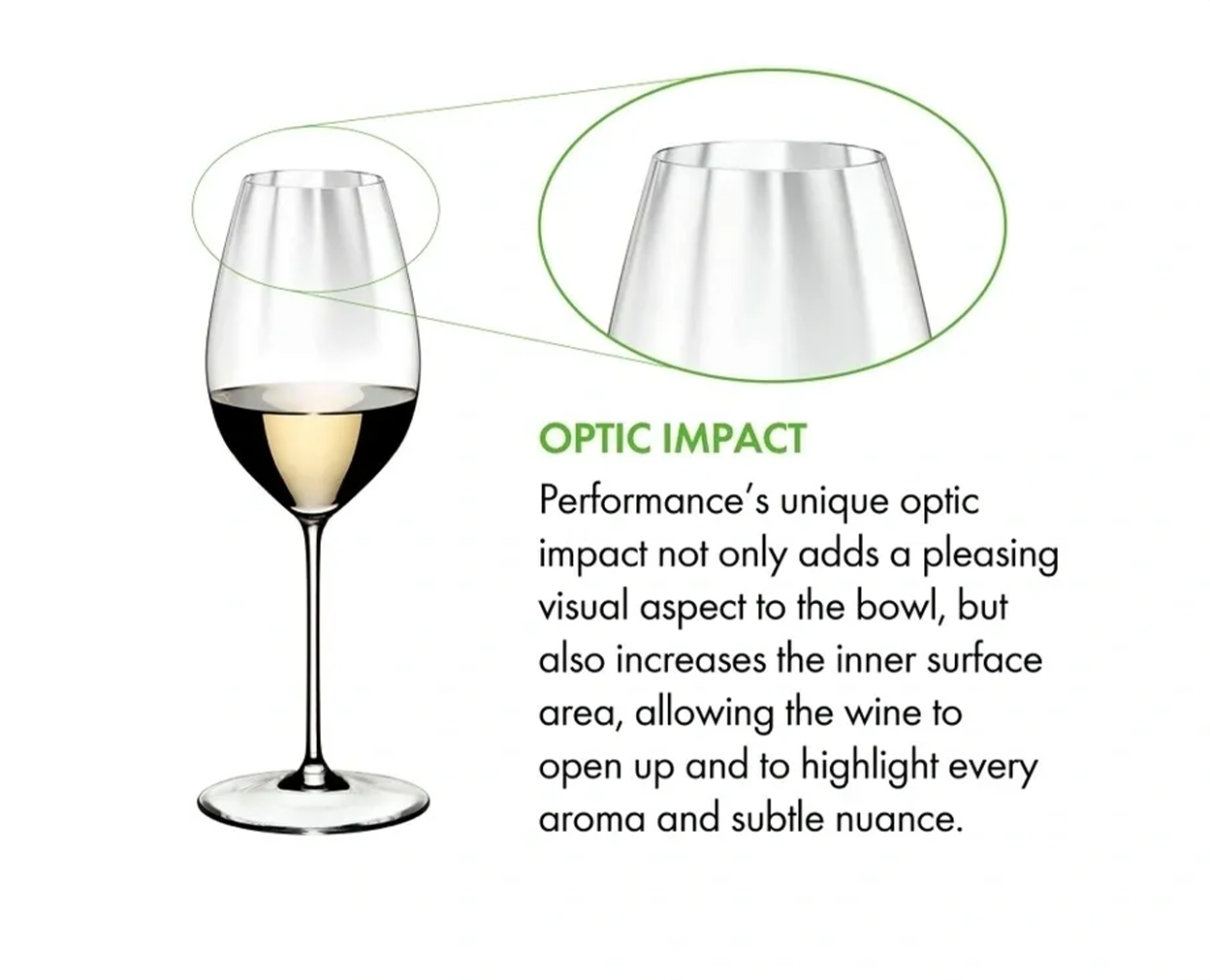 RIEDEL Performance was the first wine glass series to feature bowls with a light optic impact for better aromatics. It is a technologically advanced and user-friendly collection of Grape Varietal Specific glasses.