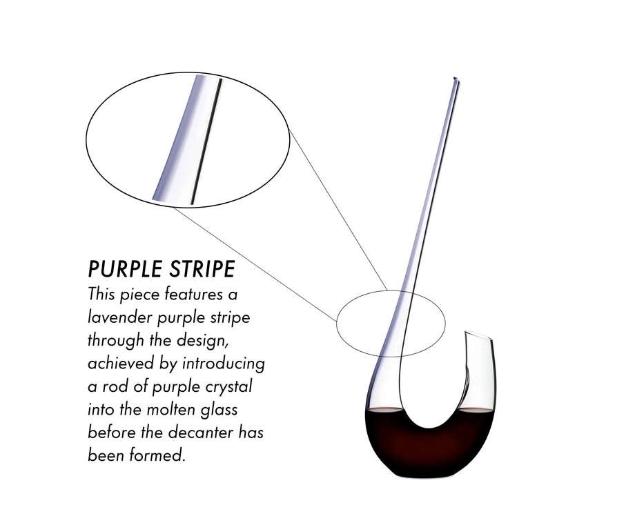 The Winewings decanter is a colorful recreation of the Swan decanter to compliment the RIEDEL Winewings glass series. Its exquisite curves make an incredible statement. Wine is decanted through the large opening but poured via its elongated neck. At 600 mm tall, it’s long enough to reach any guest at your table!